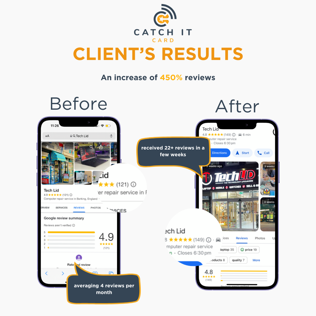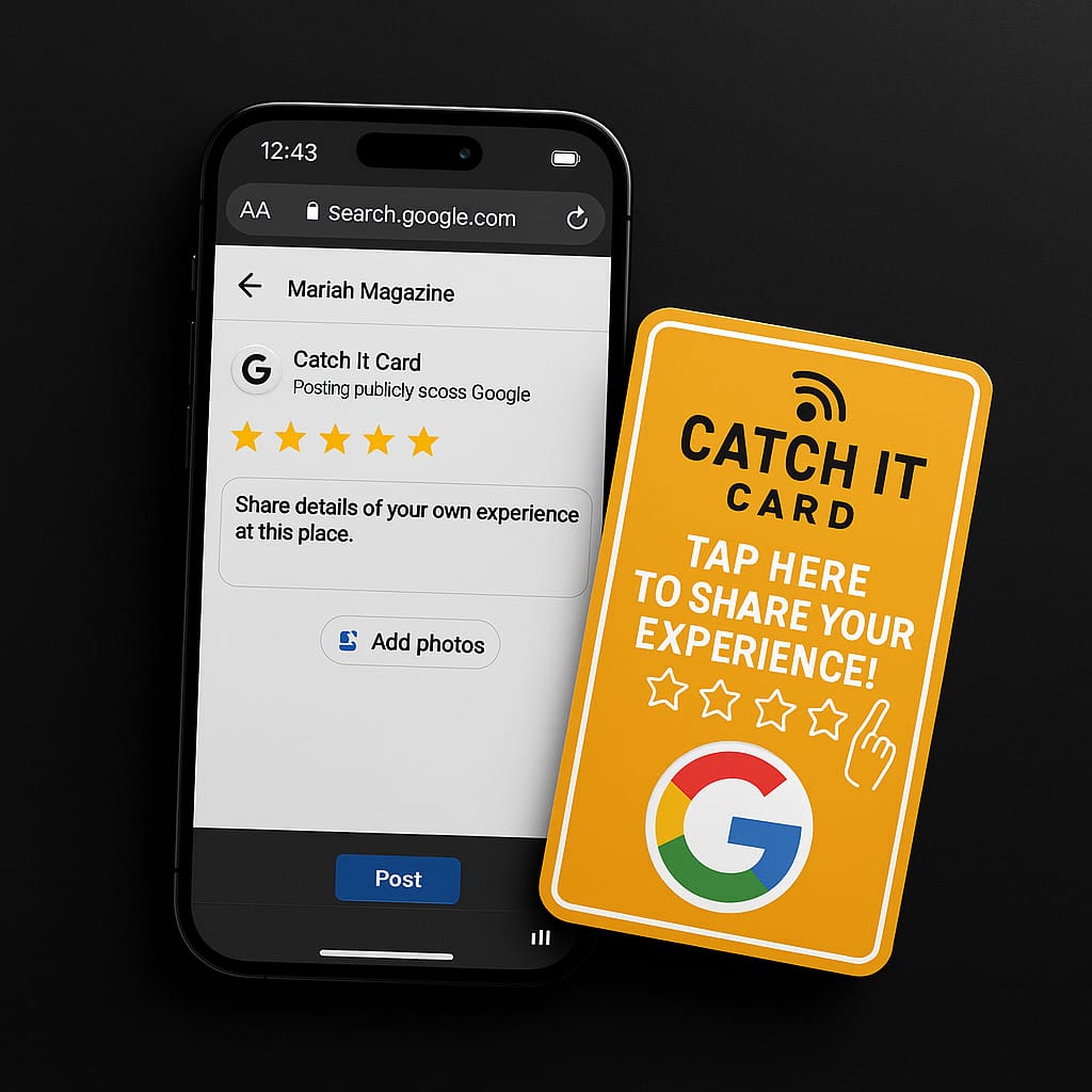 Catch It Card lets your customers leave a Google review with just one tap. Boost trust, grow faster, and stand out—perfect for any service-based business.